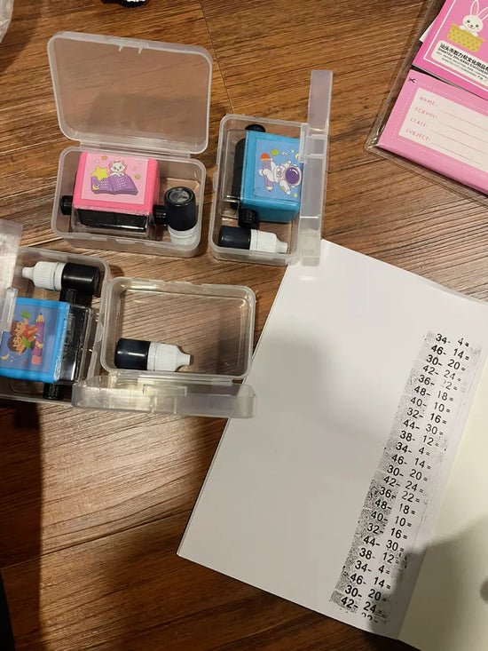 بالطبع. ما عليك سوى لف الختم على ورقة لطباعة سلسلة من العمليات. يمكن للطفل بعد ذلك حل الحسابات مباشرة على الورقة.
