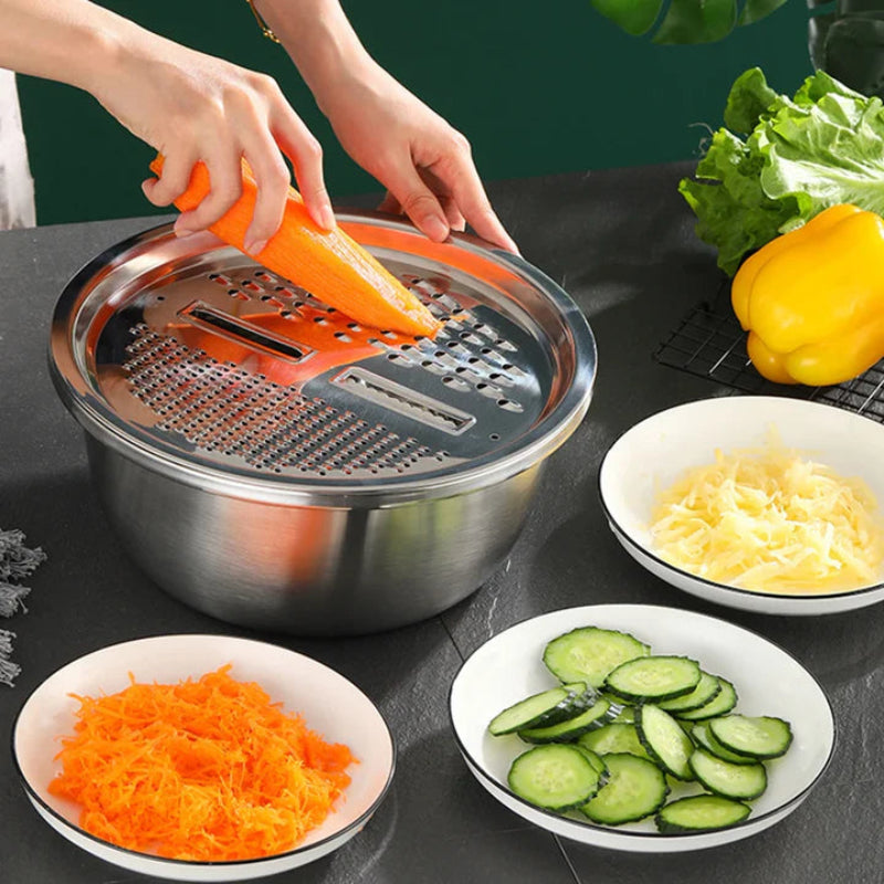 Risparmia tempo in cucina con questo contenitore multifunzionale che ti permette di risciacquare, grattugiare, affettare e scolare senza sforzo. Un solo accessorio per tutte le tue preparazioni!