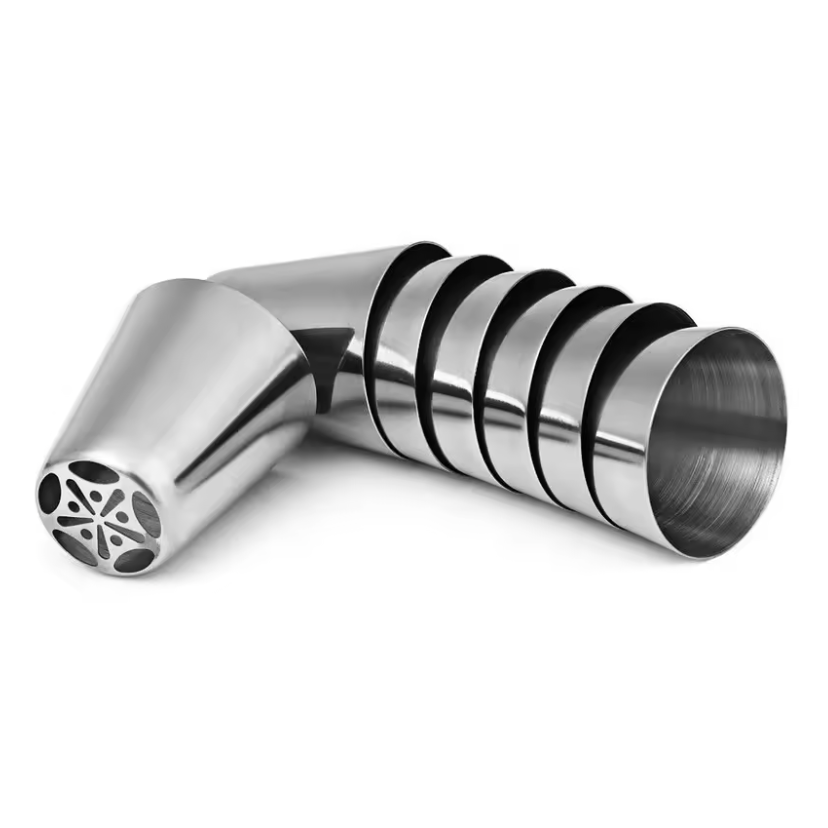 Fiecare kit conține exact 12 duze din oțel inoxidabil de forme variate, precum și un adaptor triplu și o pungă de patiserie reutilizabilă.